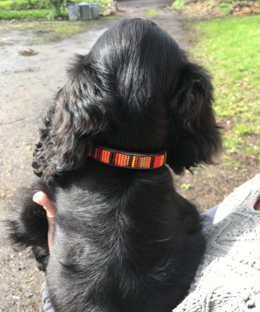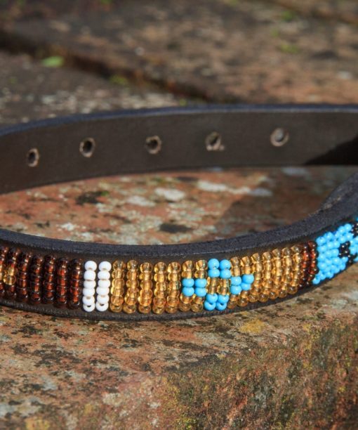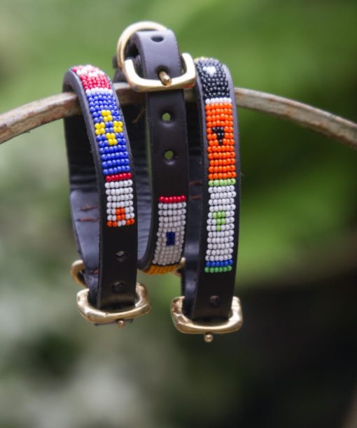 Treat your dog with this stylish animal collar. These beautifully crafted yet sturdy collars are made in Kenya from high-quality stitched leather and finished with handmade recycled brass buckle and clips. Each animal collar is hand-beaded by a highly skilled collective of Maasai women, using traditional patterns. You will be the envy of all your animal loving friends with this one-of-a-kind dog collar.