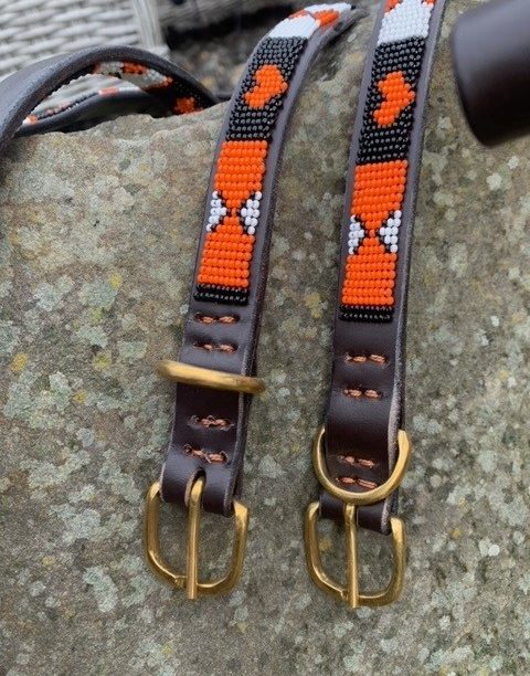 A fine collar suitable for a Rottweiler sized dog. Available in a variety of sizes and widths. Patterns vary.