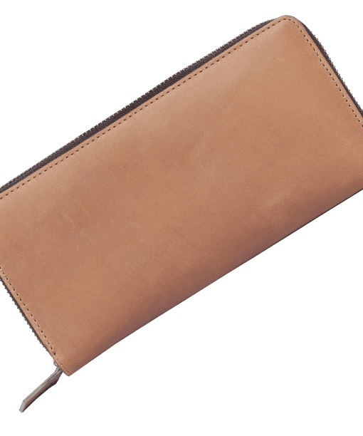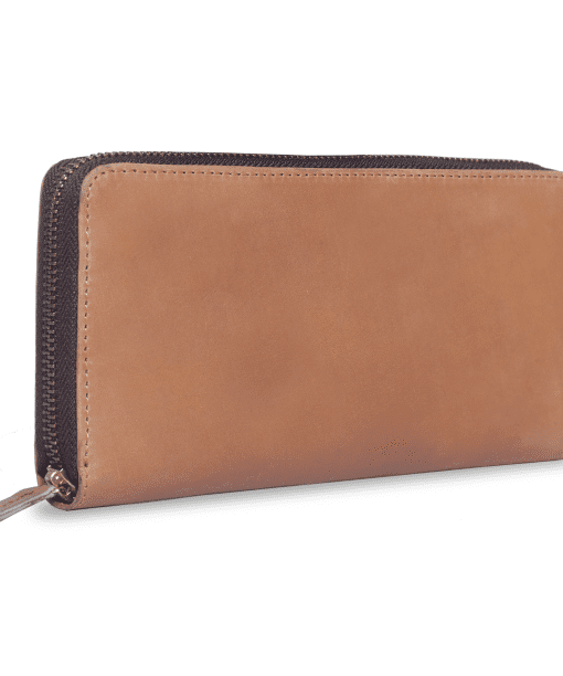 Exclusive to The Jambo Collection, this Zippy Wallet is expertly crafted in beautiful tan leather. The inside offers ample room to keep your cards and cash safe with the zip finish.