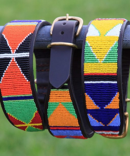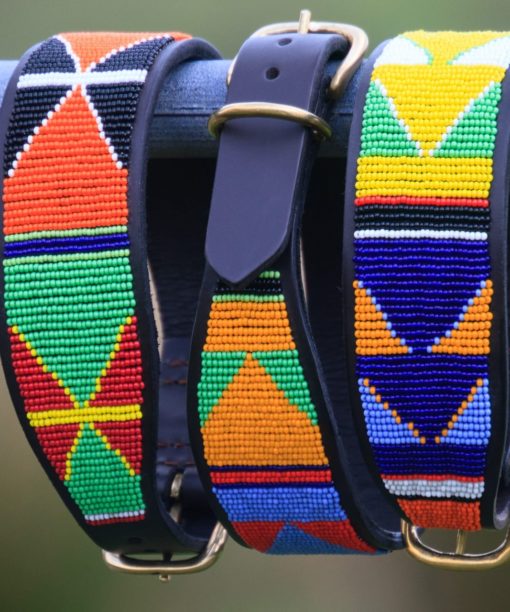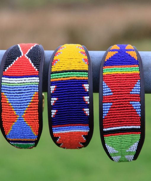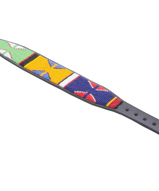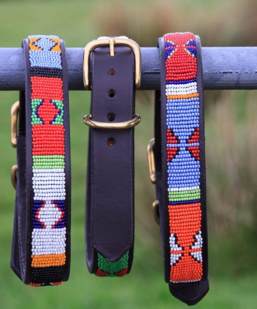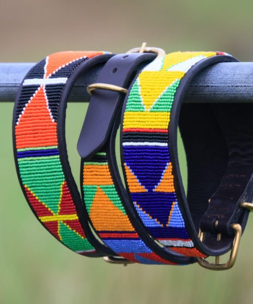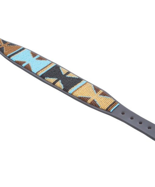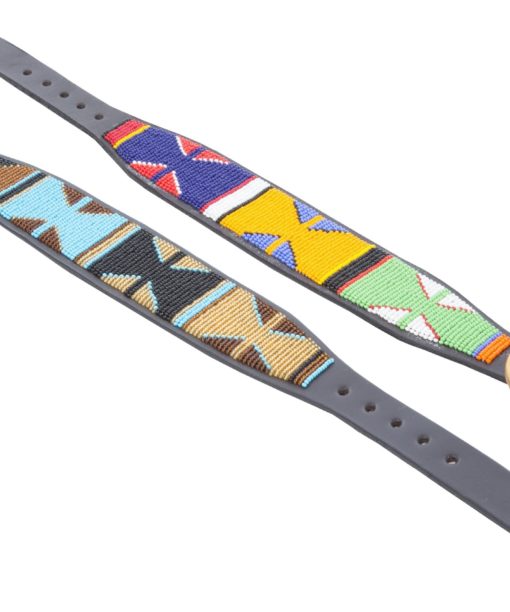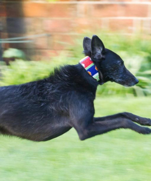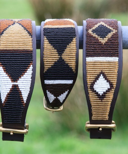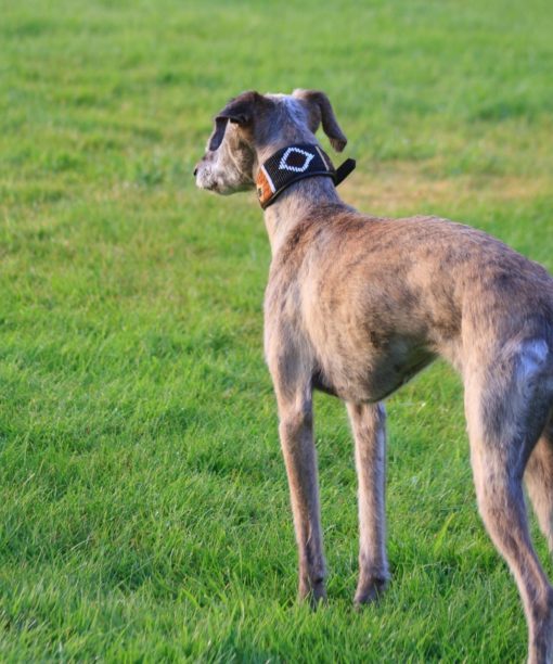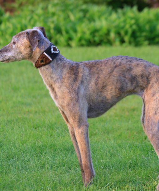 A fine collar suitable for a Lurcher dog, 12″ long and 2″ wide. All beading is individually handcrafted so patterns vary.