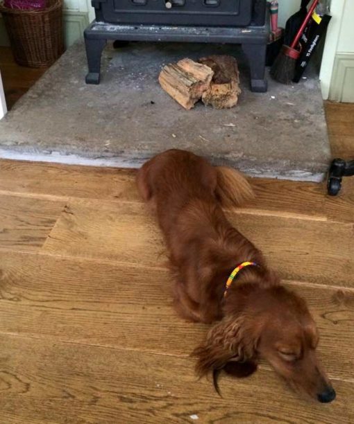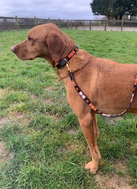 All our collars are measured in inches from the base of the brass buckle to the middle hole. Fits neck size from 11″ to 13″.